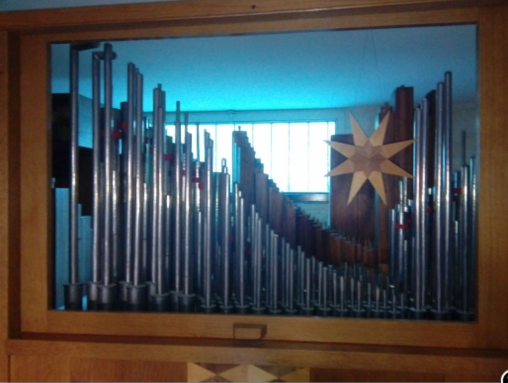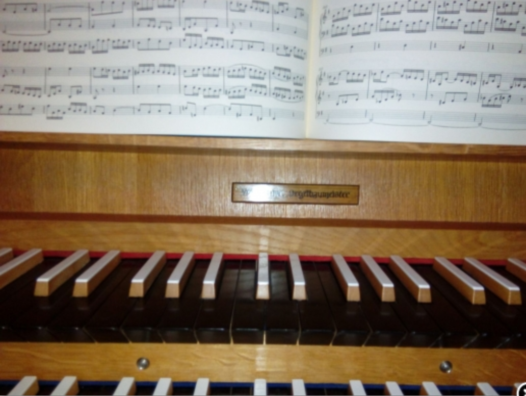Très belle orgue à tuyaux, sonorités allemande neobaroque ! Deux claviers 54 notes et pédalier 27 marches.