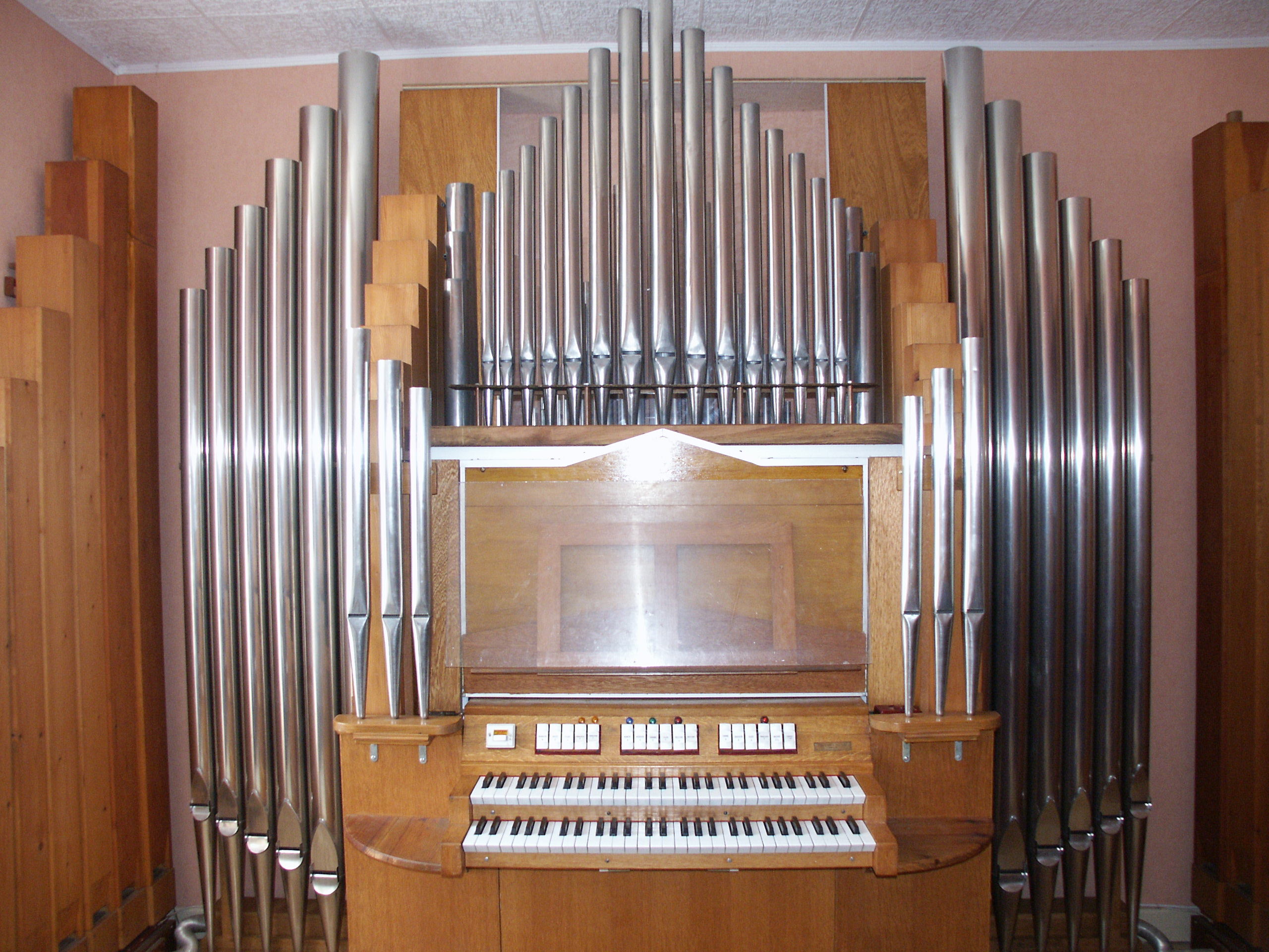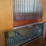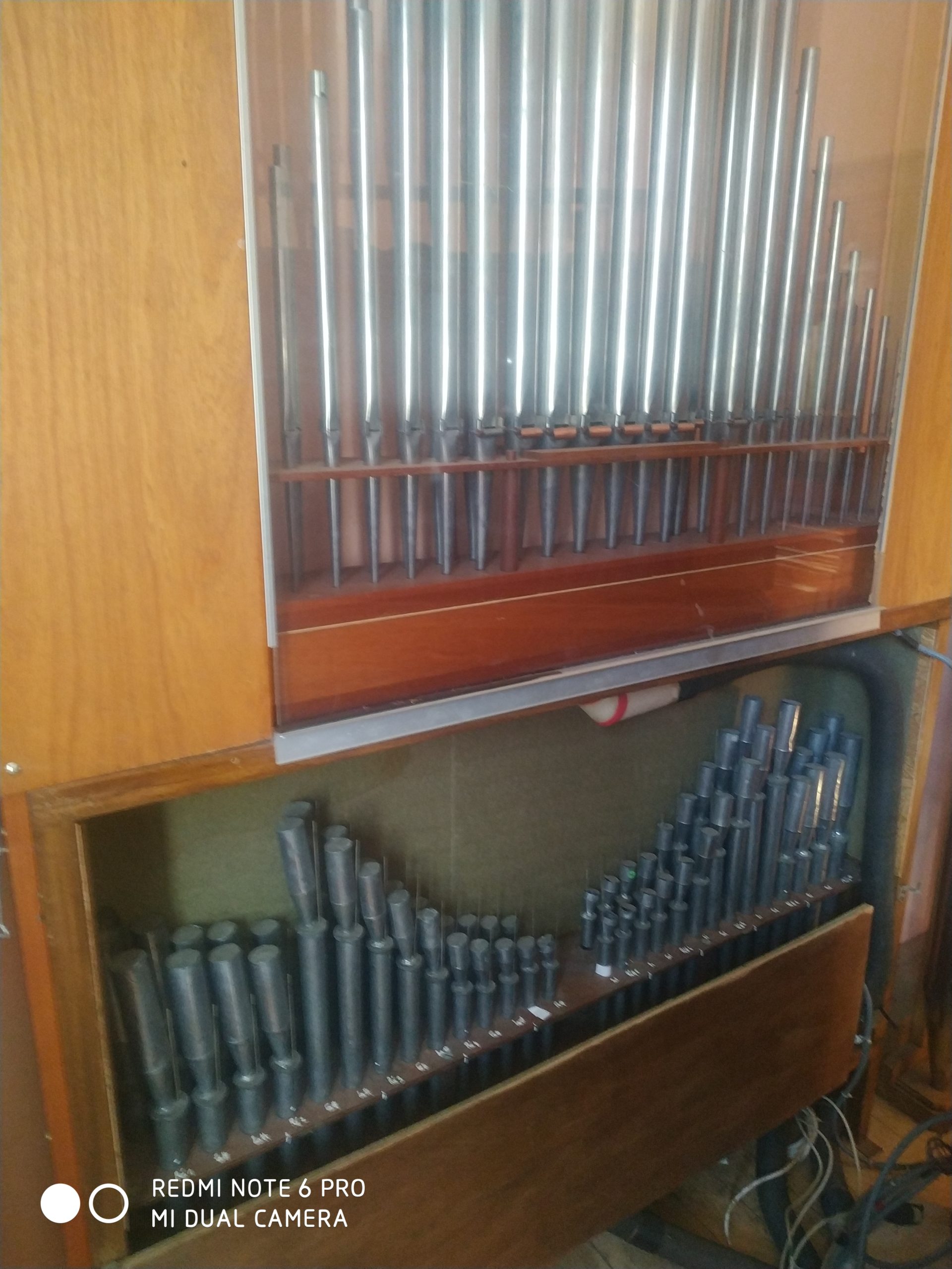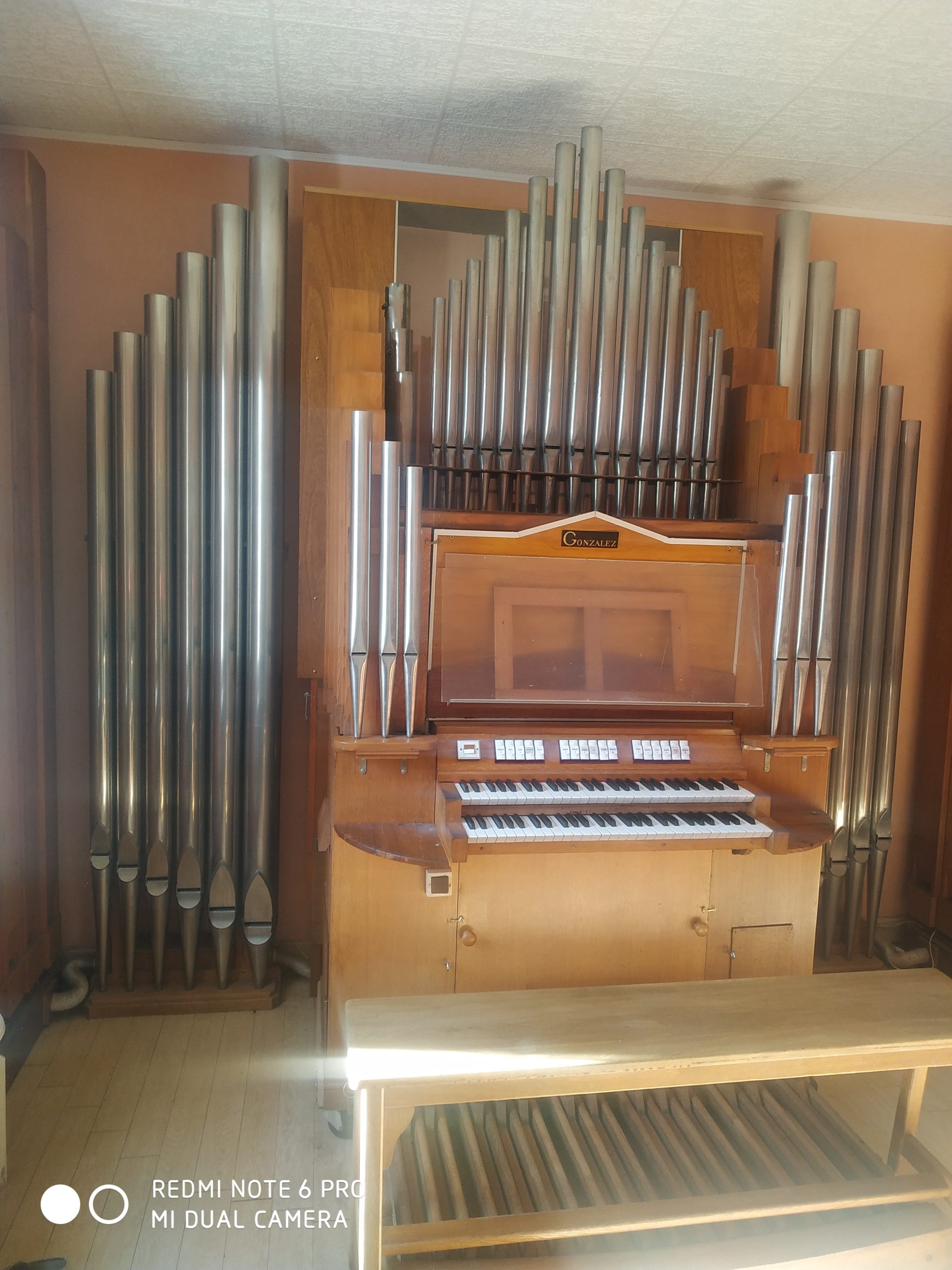 A vendre orgue à tuyaux Unit Baby Gonzalez 1973, traction électrique,2 claviers 56n,pédalier concave 32n,chêne clair, bon état, 2 jeux( bourdon8-prestant4),remanié et augmenté à 4 jeux(gambe8-régale8) + compléments graves(montre8-soubasse16).