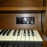4 pistons , pédale d’expression et de crescendo, accouplements, 8 banques de 6 mémoires. reverbération réglable , transpositeur , entrée aux. sorties aux. etc…