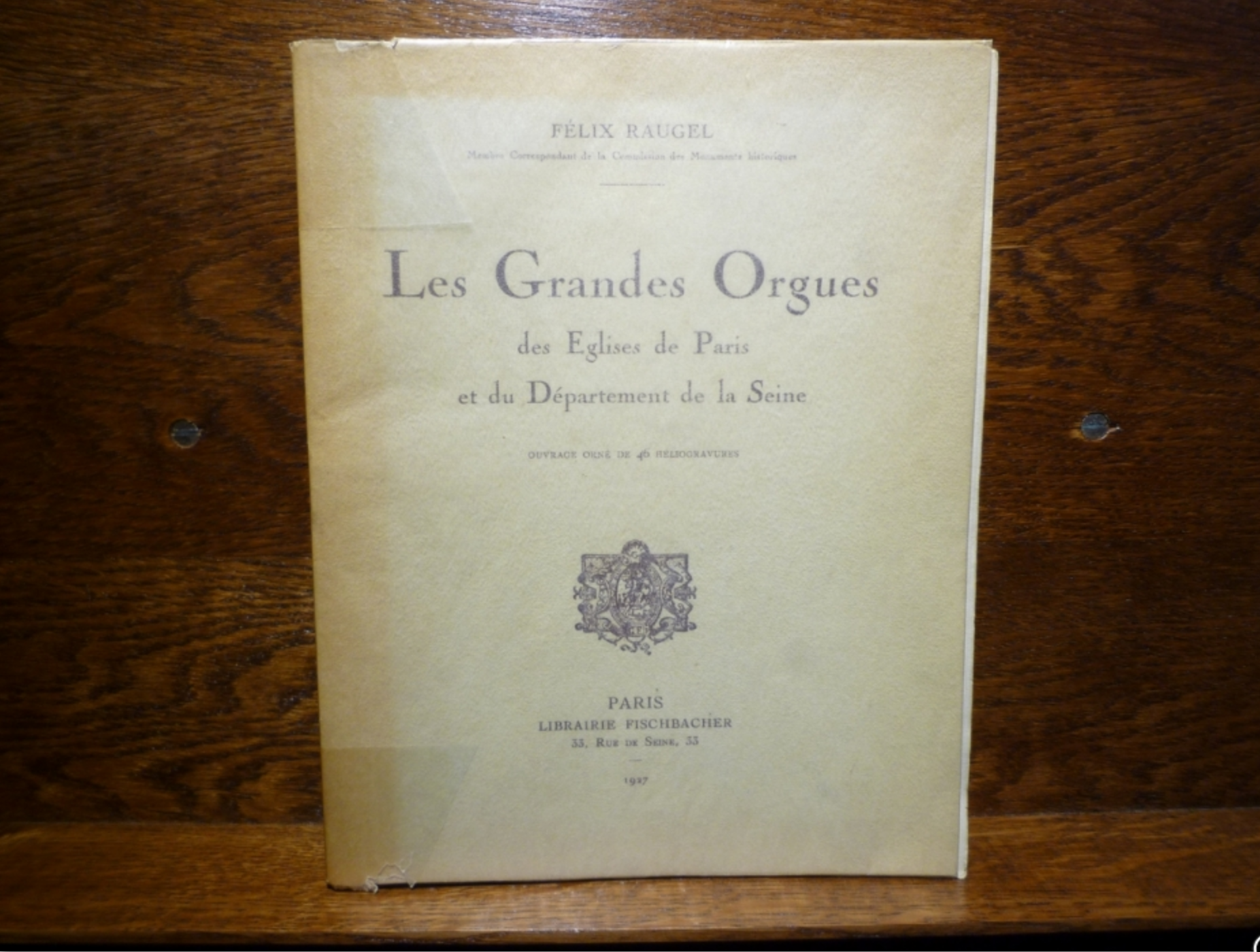 Raugel Félix, les Gdes Orgues des Églises de Paris Olivier Annonce n°820 Raugel Félix, les Gdes Orgues des Églises de Paris Type de matérielLittérature VendeurOlivier Prix250 € VilleLa Neuve-Grange 27150 Voir le numéro de téléphone Envoyer un message au vendeur Détails de l'annonce Félix Raugel, Les Grandes Orgues des Églises de Paris et du Département de la Seine. Ouvrage contenant 46 héliogravures. Librairie Fischbacher, Paris 1927. Format 24 x 19 cm, 278 pages. Édition originale. État exceptionnel. Date de publication1 mars 2026 Cette annonce a été vue 2 fois
