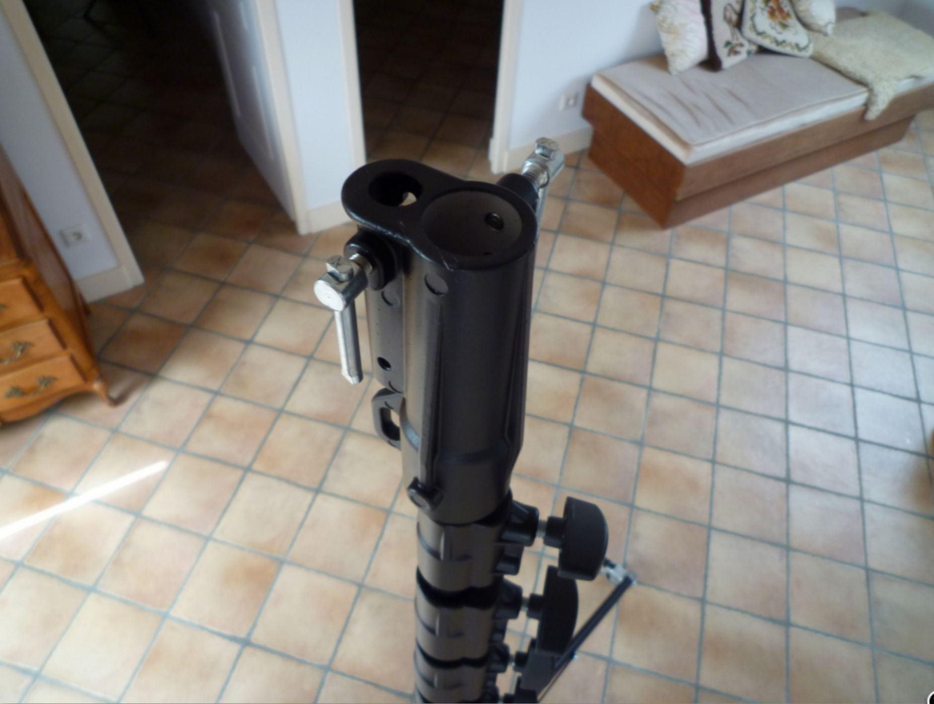 Pour prise de son orgue, trépied géant Manfrotto 269HDBU . Hauteur 7,30 m. Livré avec une rallonge télescopique Manfrotto de 3 m (hauteur totale possible 10,30 m). Entretoise à double branche pour stabilité élevée. Avec jambe de mise à niveau. Poids 10 kg, hauteur minimum 1,90 m. Équipé de roulettes avec blocage. La charge admissible est 10 kg sans rallonge et de 500 gr avec rallonge. Le trépied (hors rallonge) est en état de neuf absolu (servi 2 fois).