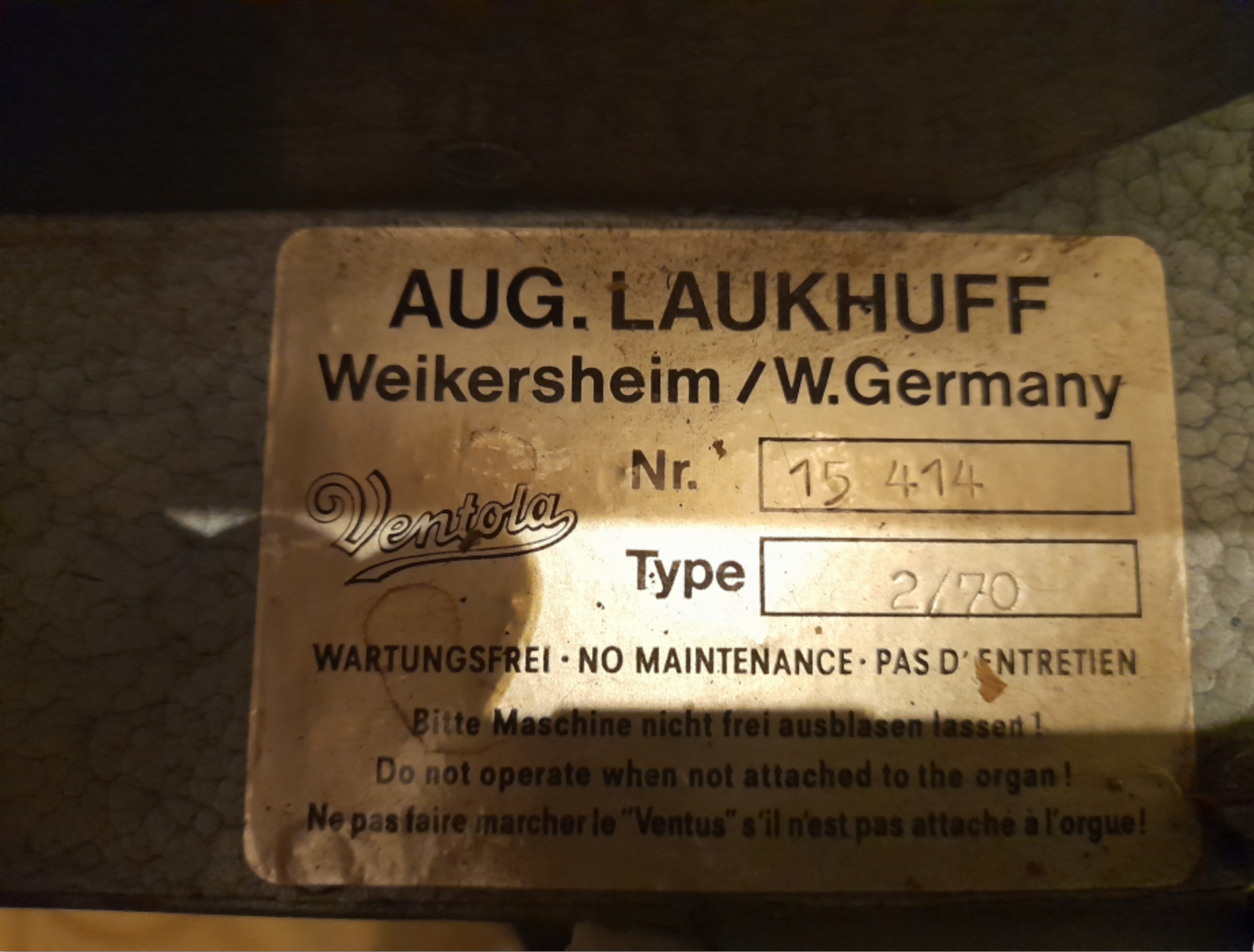 Ventilateur Laukhuff 2/70 pour orgue ou harmonium